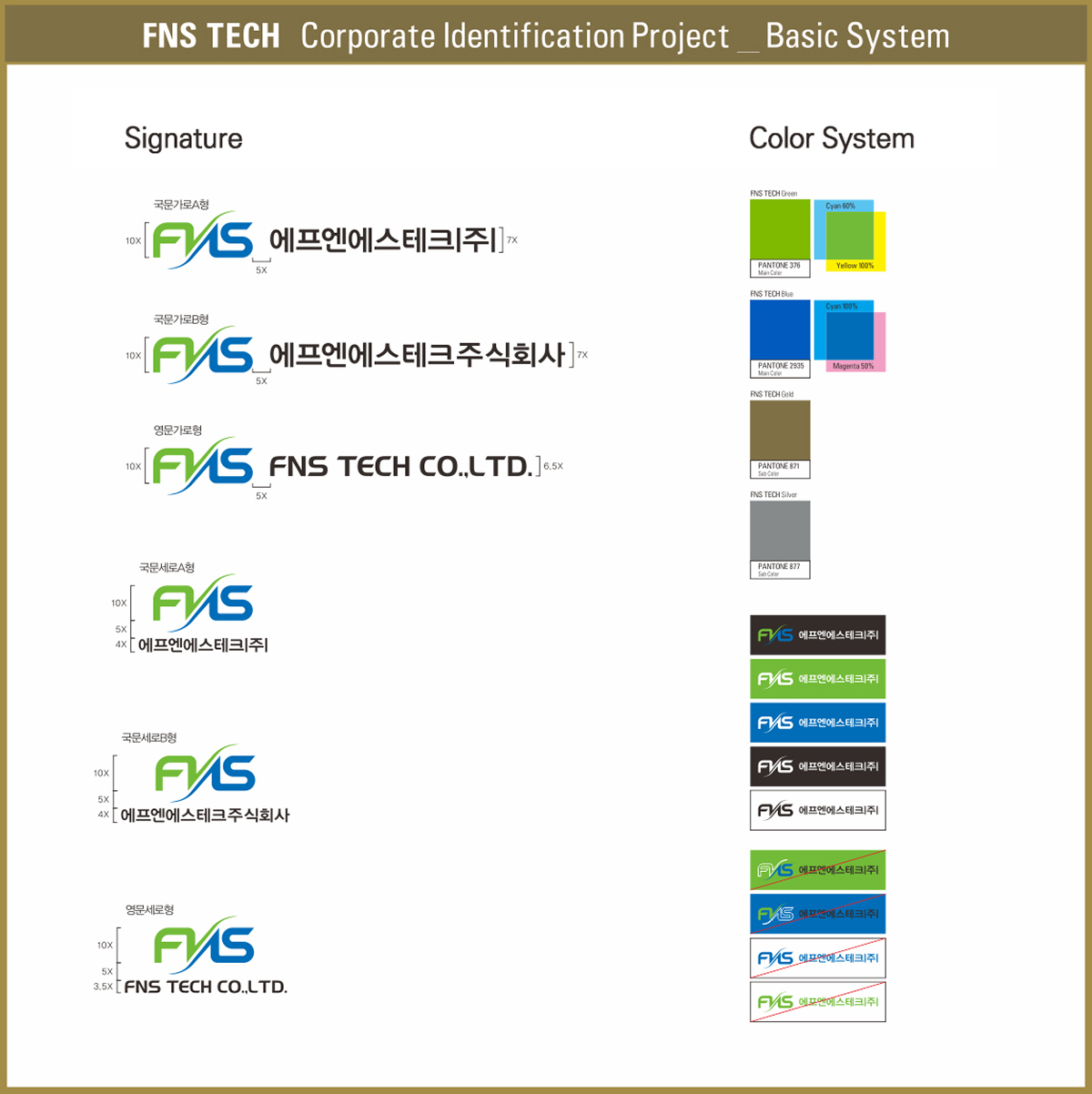 평판디스플레이(Flat Panel Display) 장비와 반도체(Semiconductor) 부품 및 소재기술을 기반으로 성장하고 있는 기업을 의미하고 있으며, 친환경적인 경영을 의미하는 그린컬러와 청렴하고 투명한 경영을 약속하는 블루컬러는 FNSTech의 미래 비전을 상징합니다.