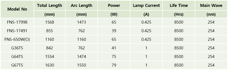 고순도 특수 석영관 채택으로 살균력이 가장 강한 253.7nm 파장을 손실 없이 투과